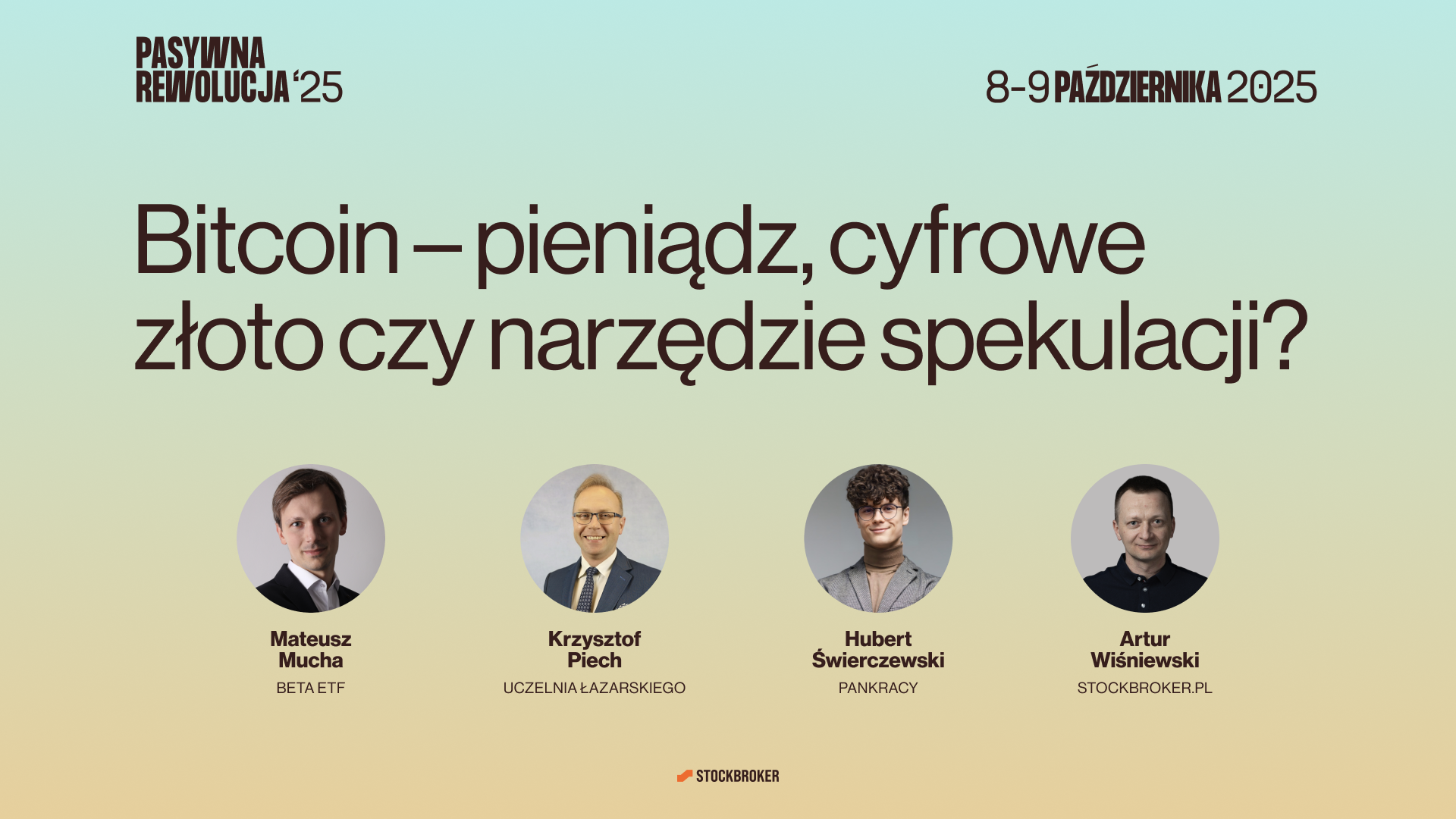 Przy okazji, jeżeli zastanawiacie się nad formą inwestowania w bitcoina, serdecznie Wam zapraszam na panel dyskusyjny „Bitcoin – pieniądz, cyfrowe złoto czy narzędzie spekulacji?” z udziałem Mateusza Muchy (Beta ETF), Krzysztofa Piecha (Uczelnia Łazarskiego) i Pankracego. Odbędzie się on w ramach konferencji Pasywna Rewolucja w dniach 8-9 października. Dostęp online jest całkowicie bezpłatny – rejestracja na PasywnaRewolucja.pl.