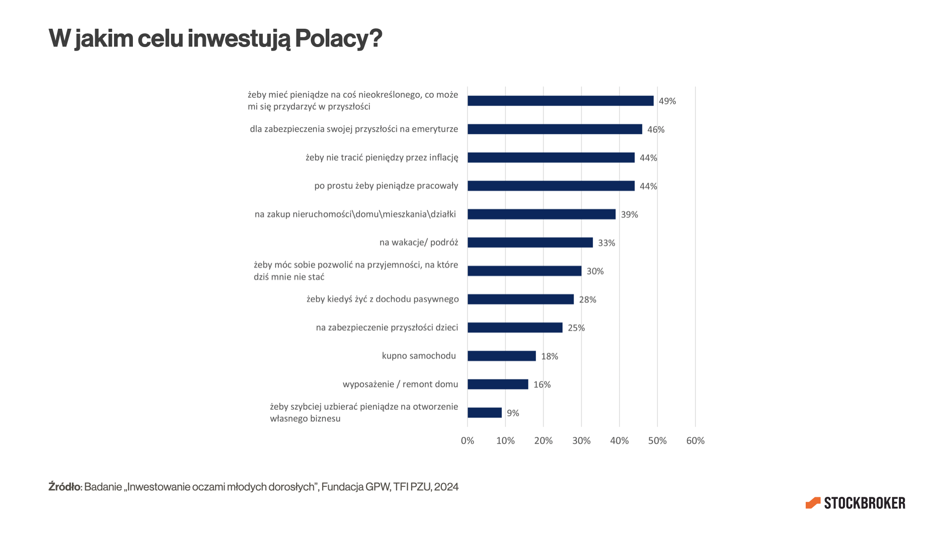 Jak inwestować małe kwoty? Przede wszystkim to zależy od celu naszej inwestycji. Badanie „Inwestowanie oczami młodych dorosłych” pokazuje, że bardzo często nie mamy sprecyzowanego celu. Czyli odkładamy na tak zwaną „czarną godziną” – na nieprzewidziane przyszłe wydatki. A jeżeli jasno określamy cel, jest nim często: