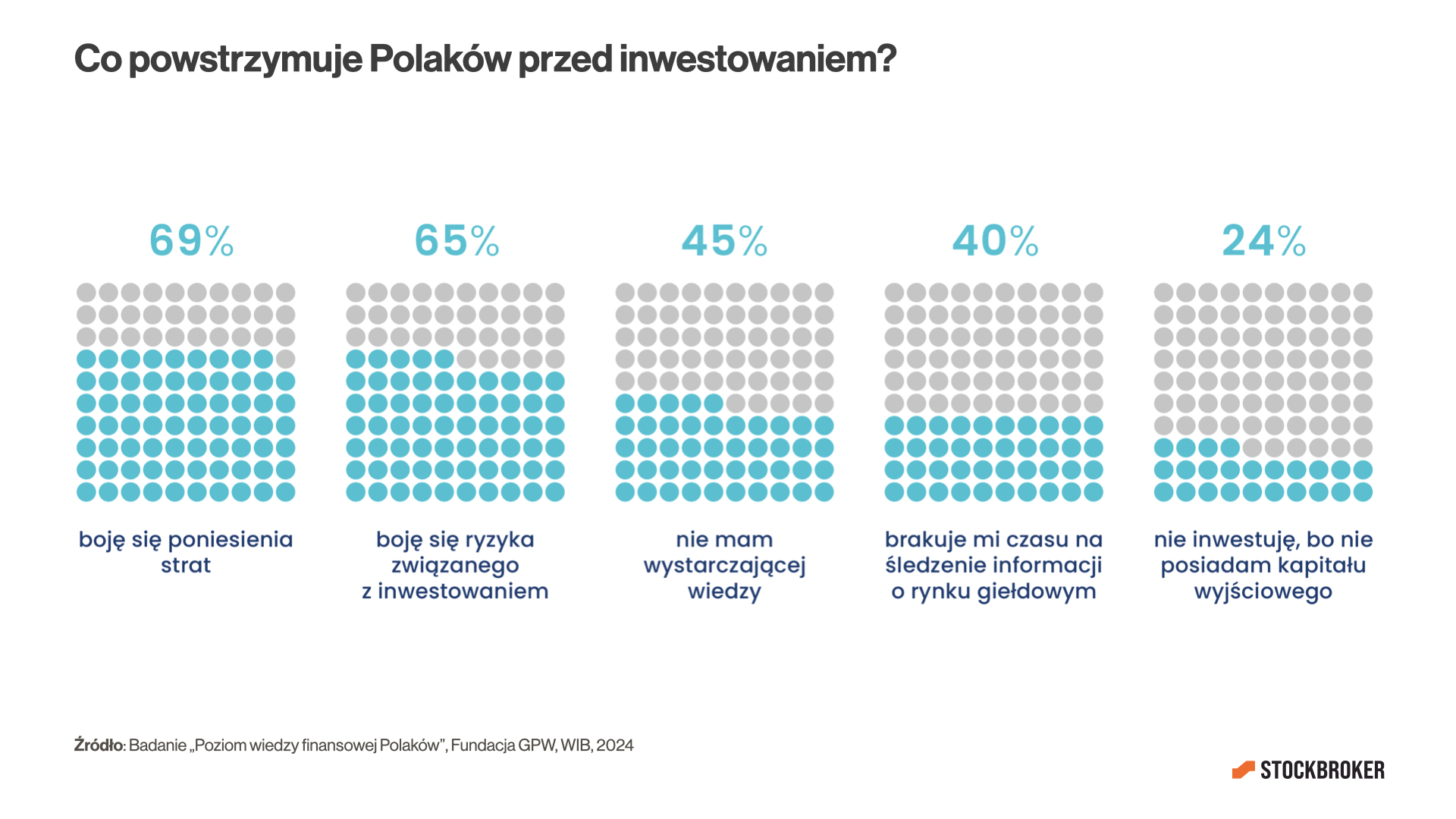 Ile trzeba mieć pieniędzy, aby zacząć inwestować? Różne źródła dość zgodnie podają, że 2/3 Polaków nie inwestuje w ogóle. Badanie „Poziom wiedzy finansowej Polaków 2024” wskazuje, że jednym z częstych powodów nieinwestowania jest brak odpowiednio dużego kapitału. Gdyby chcieć samodzielnie zbudować portfel z pojedynczych akcji, faktycznie może być potrzebna kwota liczona w tysiącach lub dziesiątkach tysięcy złotych. Jednak samodzielna selekcja to ciężki kawałek chleba. Tymczasem na giełdzie można łatwo inwestować przez fundusze. Zapewniają one dywersyfikację, a próg wejścia do nich jest niewielki. Inwestowanie można zacząć od naprawdę małych kwot. Bardzo często wystarczy mieć w kieszeni raptem 100 zł. Konkretne opcje inwestowania zależą od tego, jaką macie wiedzę, horyzont inwestycyjny, apetyt na zyski i tolerancję na ryzyko. Ogólna zasada brzmi: inwestuj w to, co rozumiesz. A im mniej wiesz, tym bardziej dywersyfikuj.
